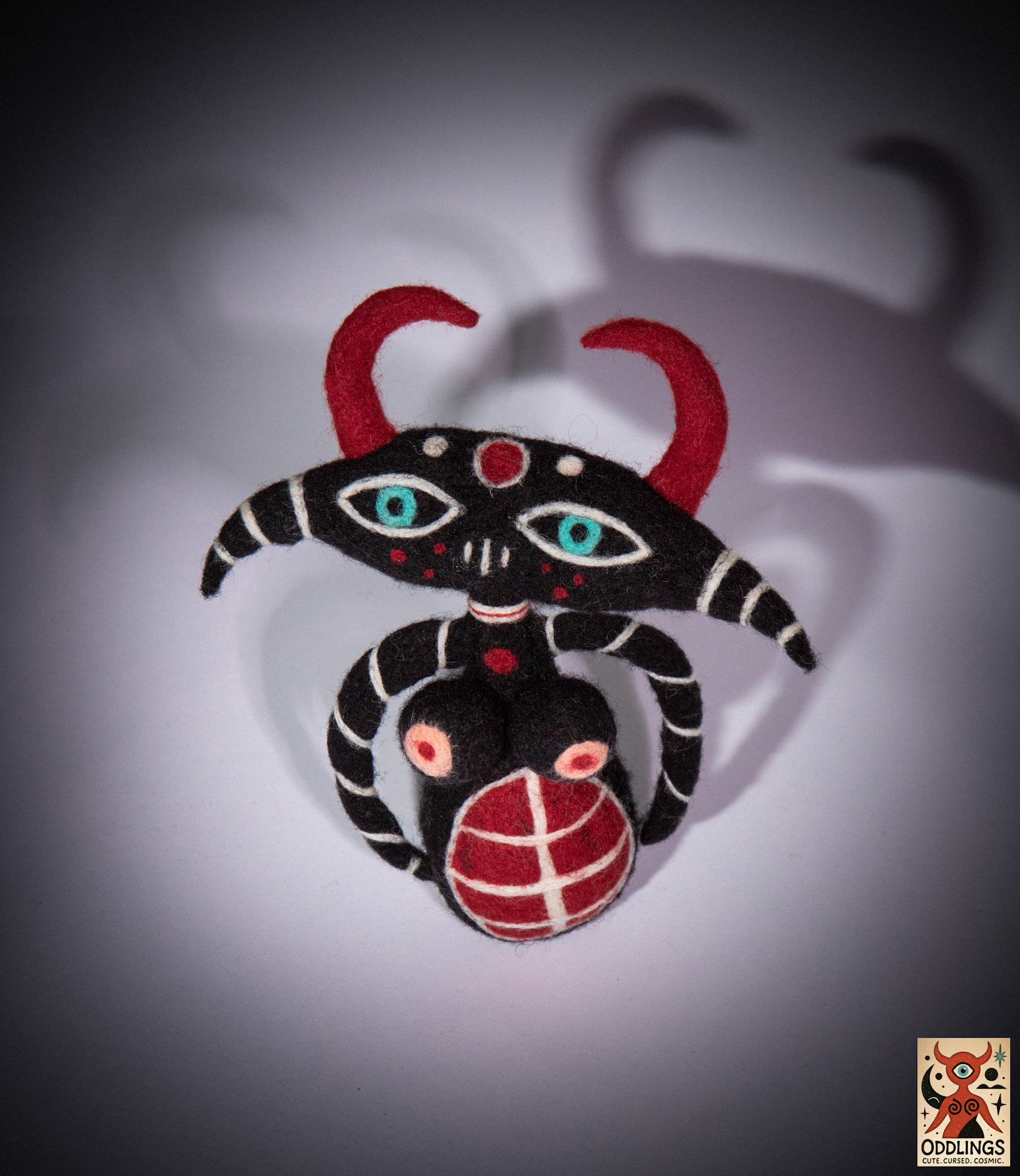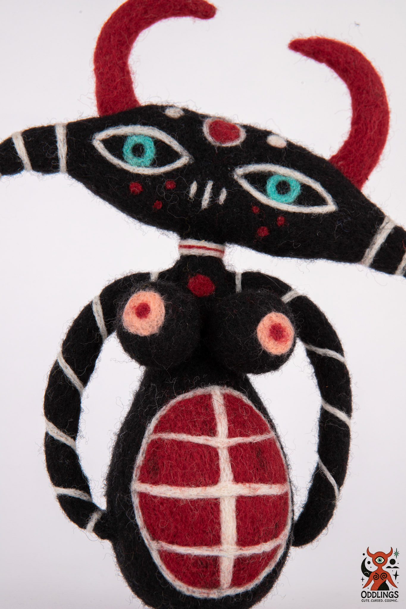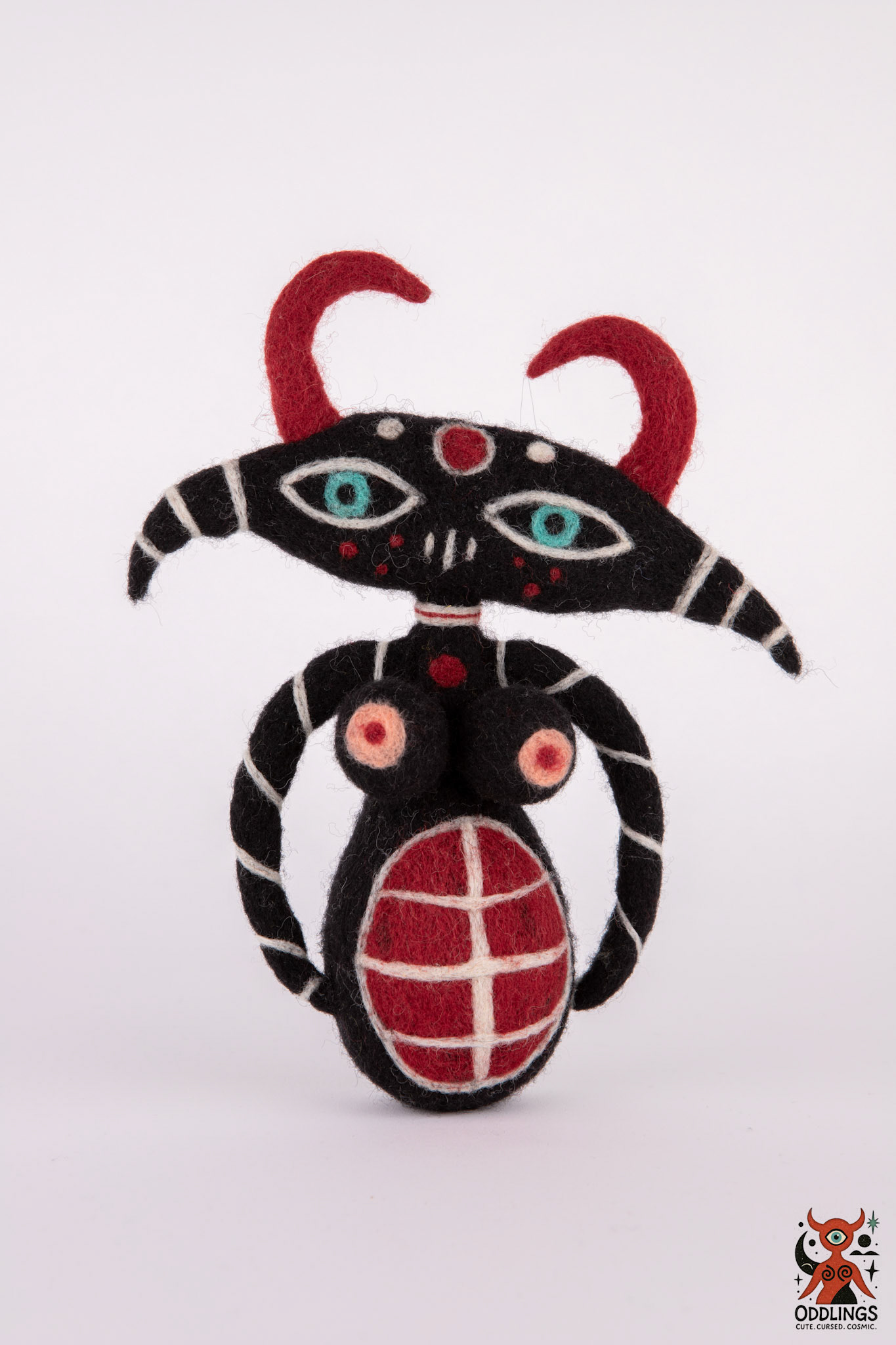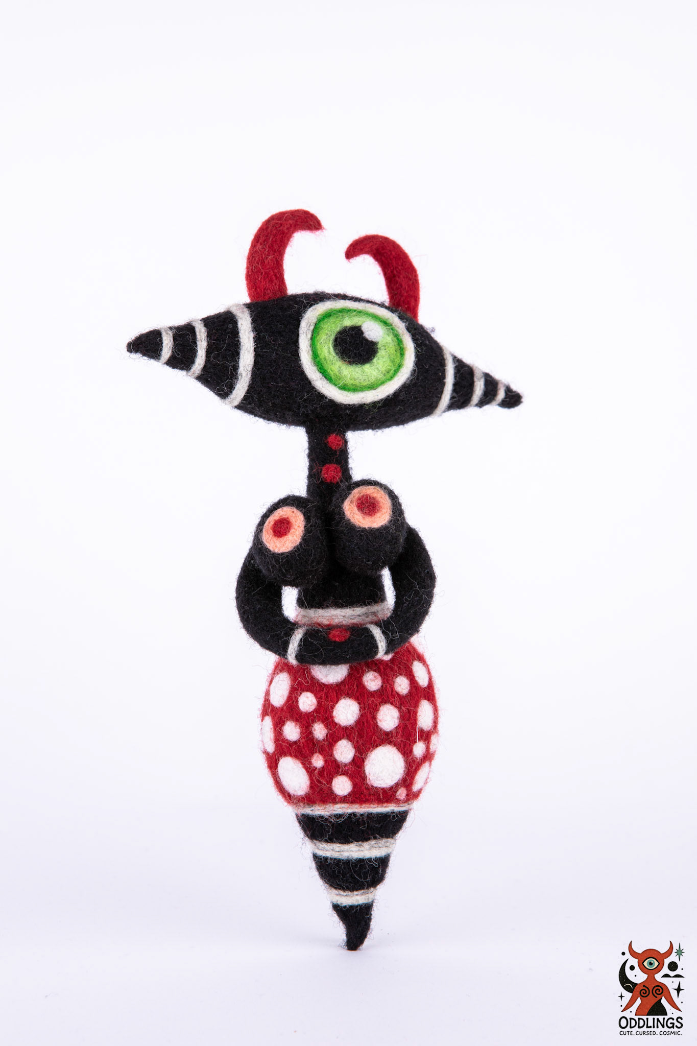 Oddlings are hand-felted dolls born from the blurred edges of fairy tales, fever dreams, and forgotten myths. Each one is a one-of-a-kind familiar — stitched with horns, spirals, breasts, eyes, and the occasional unexplainable detail.