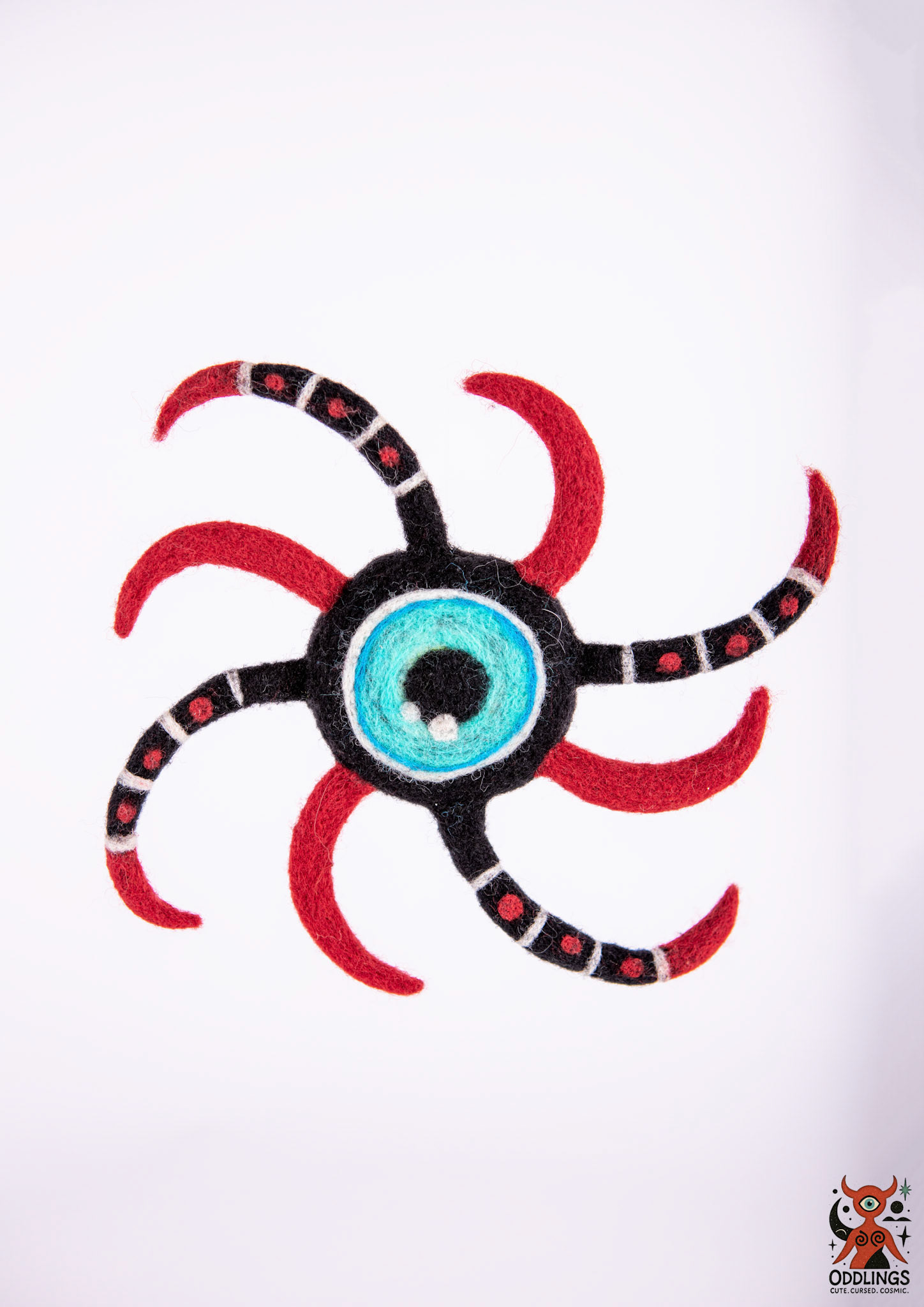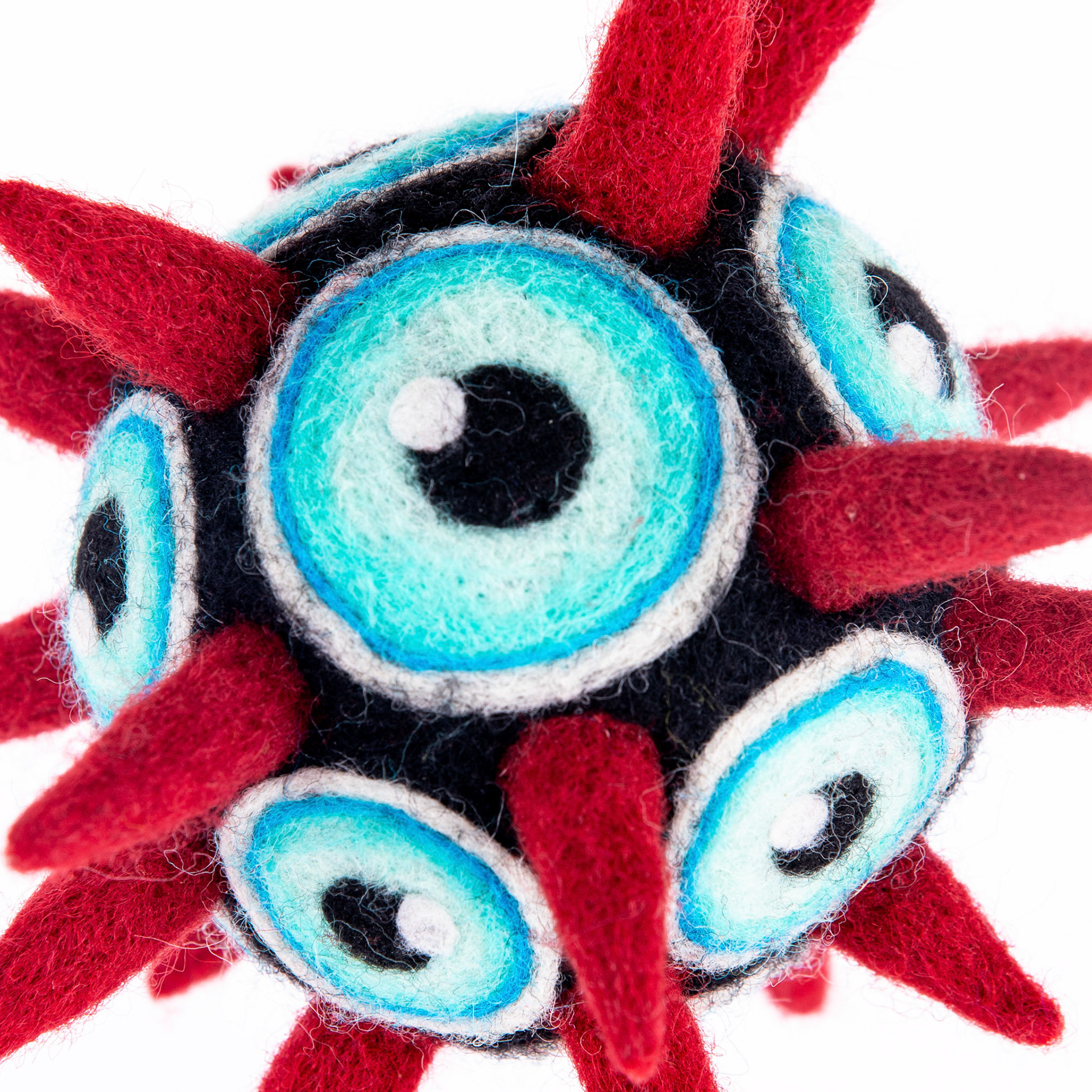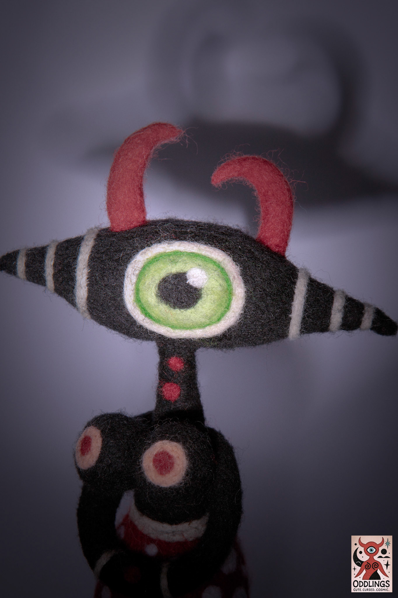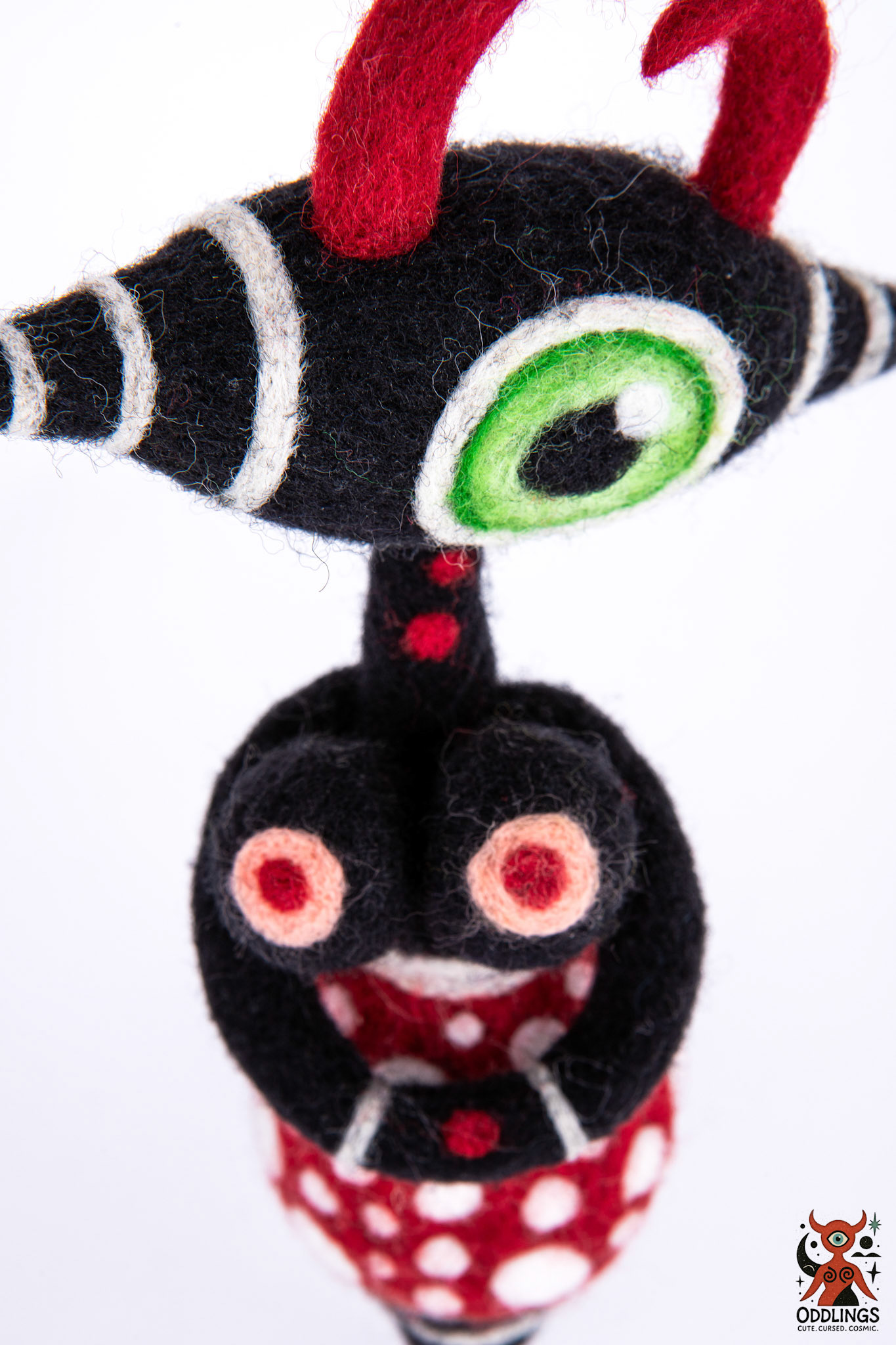 She’s a hand-felted, one-of-a-kind soft sculpture — part oracle, part clown, part optical parasite.
